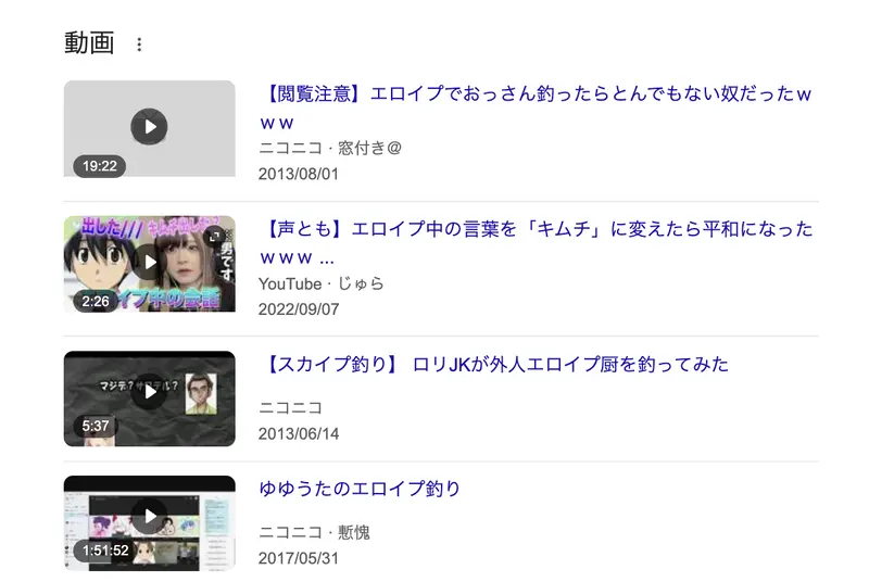 - さらしリスク:エロイプの映像をYouTubeやニコニコ動画に投稿される