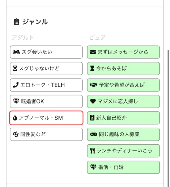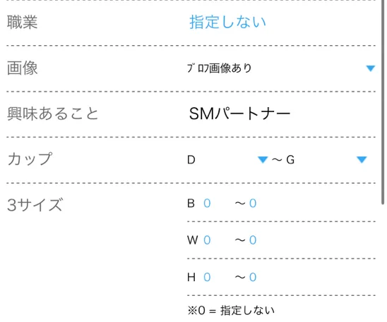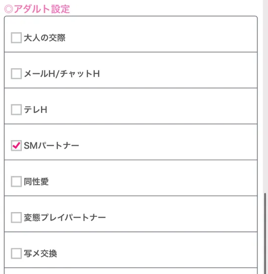 最初からSMパートナーを見つける前提なら、SMにチェックを入れたうえで検索するとよいでしょう。